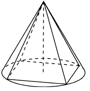 называется описанным около конуса, если окружность основания и вершина конуса принадлежат