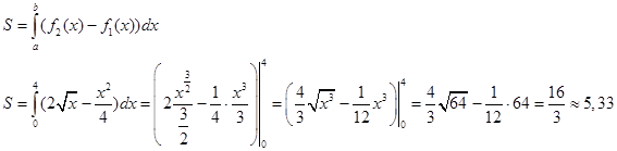 Найдём площадь фигуры с помощью определённого интеграла:
